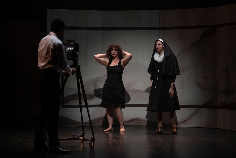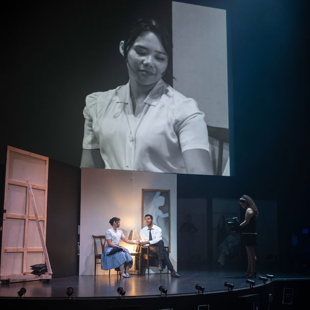 The musical moves rapidly through reality, memory, and fantasy. Using nine movable painted book flats and an 8m revolve, we created a series of fleeting film sets. Allowing Guido to curate what we see on screen, omitting what he is reluctant to show. The content of all elements featured in the shots were 60s in nature; however, all other elements outside of the film sets were contemporary.